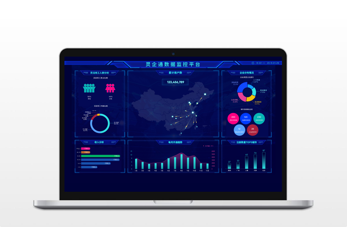 数据协同,实现实时动态监测。平台与政府部门在原有监管体系下,运用平台大数据建立风控模型,实现实时监测、动态分析、数据化、可视化监控,大数据风险精准预警推送、风险疑点自动评估等功能。